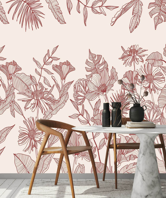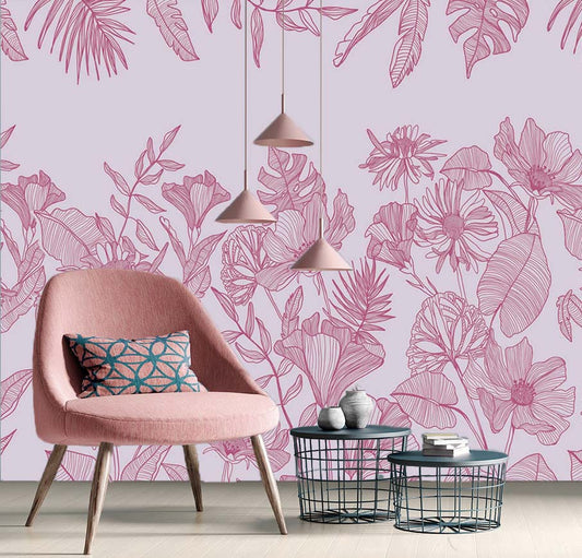 Mural de Parede Traços da Natureza Rosa Crie Paredes