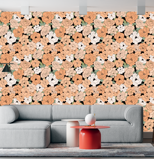 Papel de Parede Peônias de Pêssego Crie Paredes