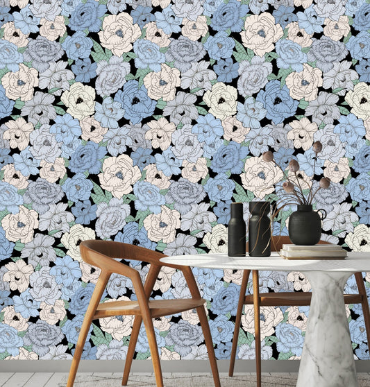 Amostra do Papel de Parede Peônias de Azul Crie Paredes